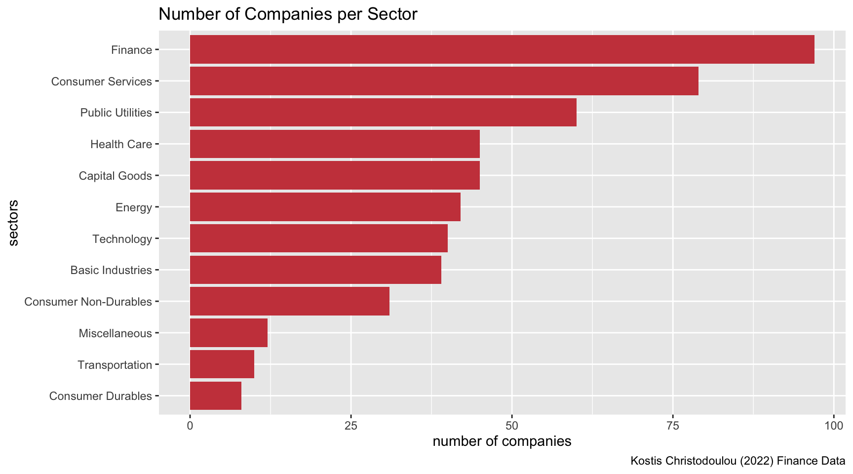 Visualisation of number of companies per sector based on the dataset